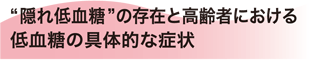 主治医が「低血糖あり」と判断した患者の自覚症状として多かったのは、「冷や汗」、「体がだるい」、「ふらつき」(約30%)、次が「目のちらつき」、「ボーっとした感じ」(約25%)、そして、「手のふるえ」、「強い空腹感」、「動悸」(約20%)でした。一方、「物忘れ」など老年症候群に関連する症状は、「低血糖あり」群と「低血糖なし」群でほとんど差が認められませんでした。