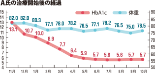 患者とのかかわりのなかで、高血糖状態を認識するためにSMBGによって自分の行動の変化と血糖値の変化を知ることは、行動変化の動機づけや励みとなると考えられた。SMBGを開始し、食事量・内容や運動など生活のなかでの血糖値の変動を理解させた。