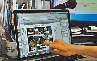 写真 先生ご自身の朝食メニューをモニター画面で患者さんに説明