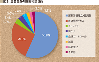また健康運動指導士と理学療法士が、外来の待ち時間を利用して、無料の運動相談(20~30分/回)を行っており、その相談を通じて見える、患者の運動に対する実態について紹介する。