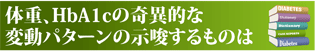 は、HbA1cと体重が線対称、すなわちHbA1cが上昇すると体重が減少、HbA1cが低下すると体重が増加する奇異的なパターンです。この症例は、強化インスリン療法を行っており、60単位/日を使用していました。血糖コントロールの改善局面では、指示通りインスリン注射を行い、食事療法が守れないため体重が急激に10kg増加しています。HbA1cが6%以上悪化した局面では、インスリン注射量の著明な不足が想定され、血糖コントロール不良による10kgの体重減少がみられます。このような患者の多くは治療への遵守が悪く、医師とのコミュニケーション不足から自分の症状や不満、治療への意見を伝えられないことが認められます。その背景には治療や社会環境に対するストレスや治療改善の際に起こった低血糖に対する恐怖による血糖上昇などが考えられます。いずれにしても10kgの体重やHbA1c6%の増減は、治療が円滑にいっていないことの反映で、入院加療なども含めた、従来とは異なったストラテジーが必要だと考えます。
