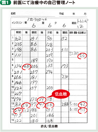 食事療法は自分なりに心がけているが、年齢相応な生活もあり、常に徹底しているわけではない。食事量が多いときは、主治医に内緒で追加インスリンを1〜2単位多めに打ち、食前血糖が200mg/dLを超えた時も1単位増量している。